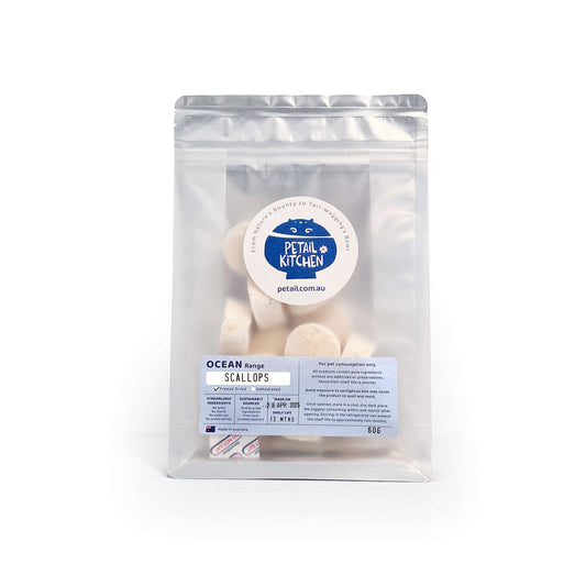 Give your pet our special Freeze-Dried Scallops. Each large 3.5cm piece is packed with flavor pets love.