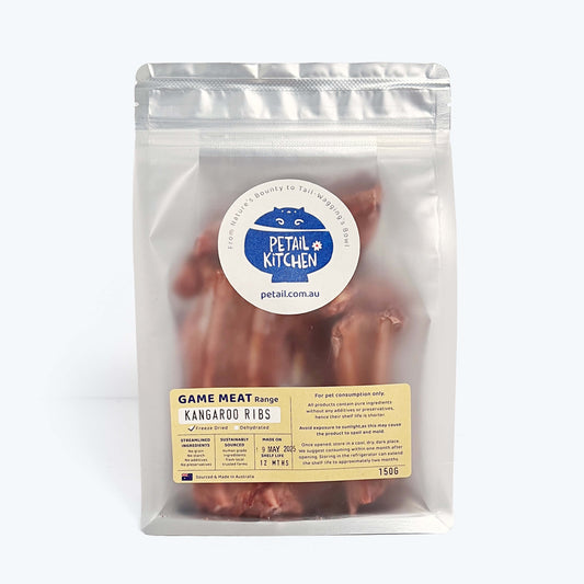 Regular price From $13.50Regular priceUnit price / perSale price From $13.50Crafted from locally sourced Australian kangaroo ribs, these treats are carefully cut into small, manageable pieces before being freeze-dried to lock in natural flavor and nutrition. Their ideal size makes them perfect for dogs of all breeds to chew and enjoy. Lean and protein-rich, kangaroo ribs promote dental health through natural gnawing action — all without the worry of excessive fat intake.
